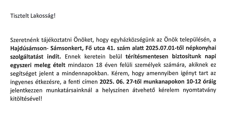 2025 november 27.|Hírdetmények / Tájékoztatás, Hírek, Lakossági tájékoztató|