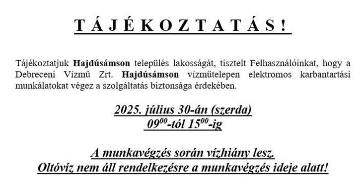 Értesítjük Hajdúsámson Tisztelt lakosságát és a jogi személyeket, hogy 2021. november 01-én (hétfőn) a hulladékszállítás az ünnepre való tekintettel elmarad!