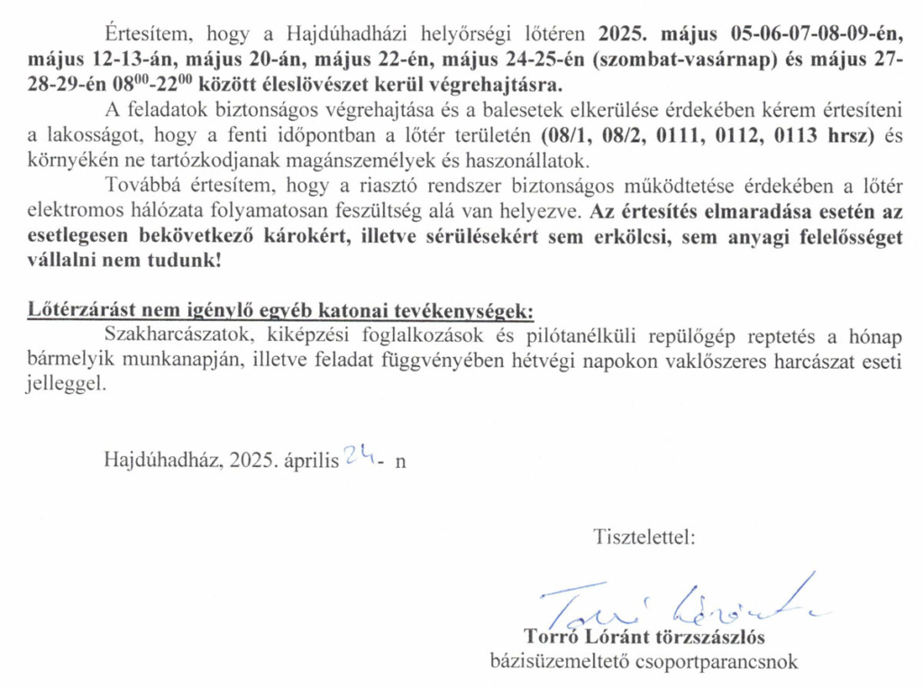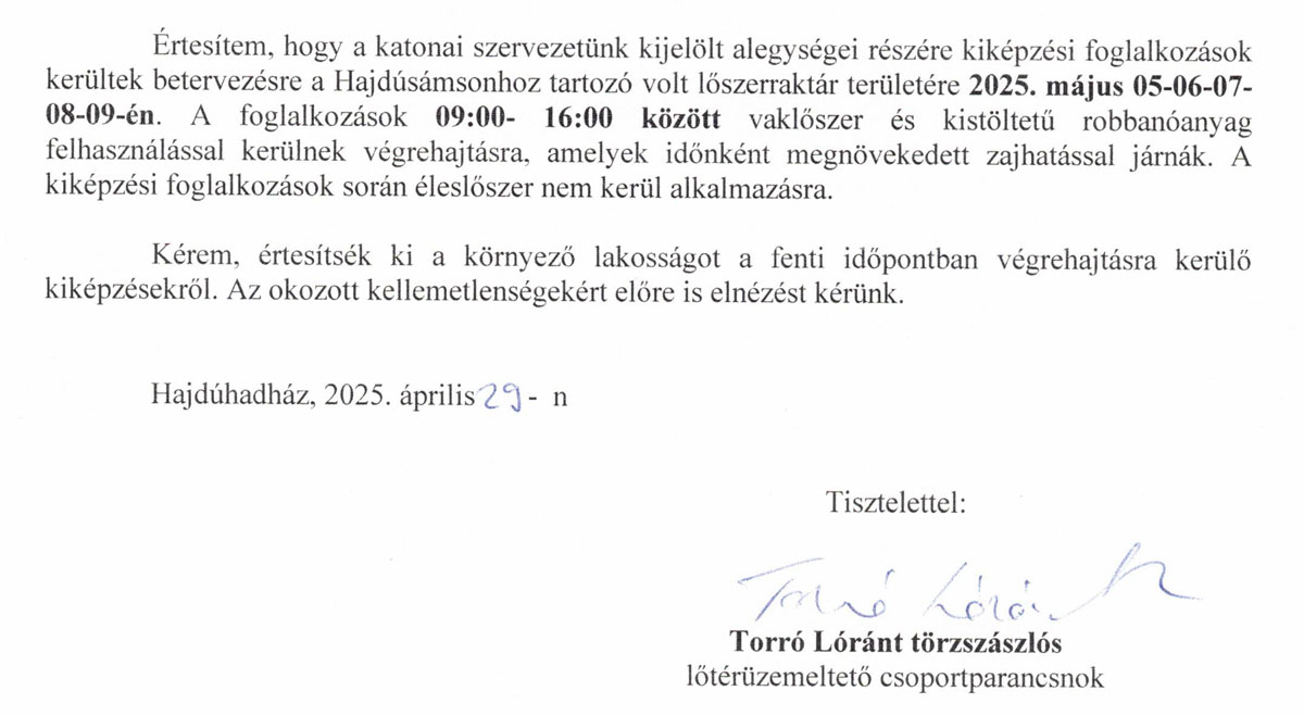 Honvédségi közlemény! – Zárógyakorlatát 2025.11.26-27
