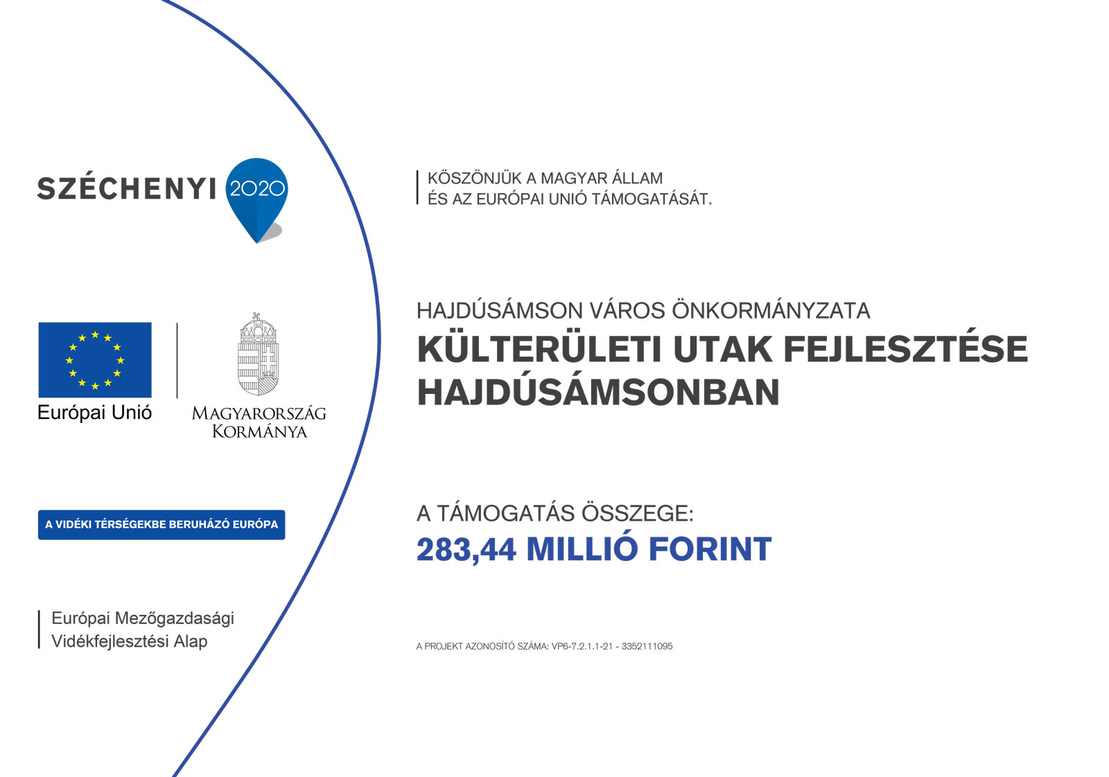 Projekt címe: KÜLTERÜLETI UTAK FEJLESZTÉSE HAJDÚSÁMSONBAN