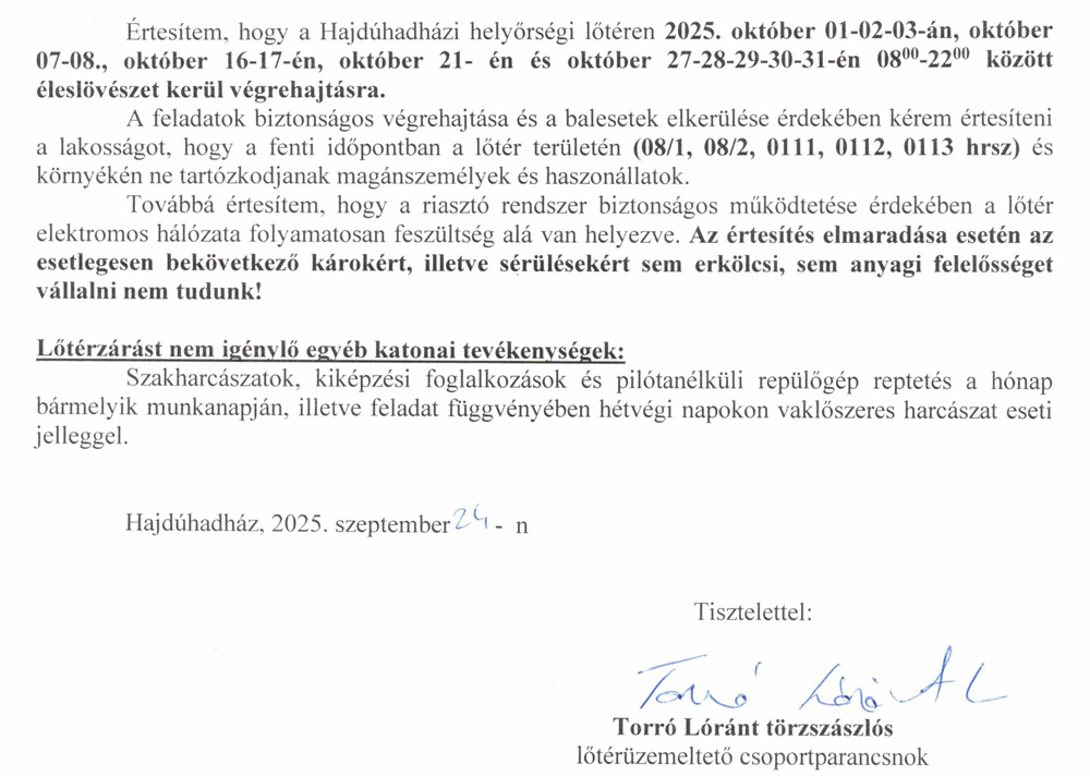 Honvédségi közlemény! – Zárógyakorlatát 2025.11.26-27
